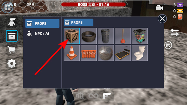 4、打开道具界面后,选择对应的场景道具,这是布置战场环境的重要操作,合理放置道具可辅助阻挡敌人或创造有利的战斗地形,提升优势。