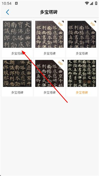 3、在多宝塔碑列表页面点击目标作品条目,进入该作品的详情页面查看书法内容。
