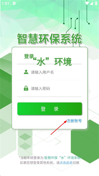 2、在水环境登录页面,点击注册账号,即可进入用户注册的界面。