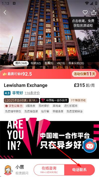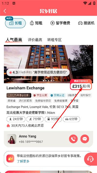 区别于普通海外租房平台,聚焦留学生群体的租房痛点与需求,房源信息与服务均为留学生量身定制,使用体验更贴合其实际租房场景。