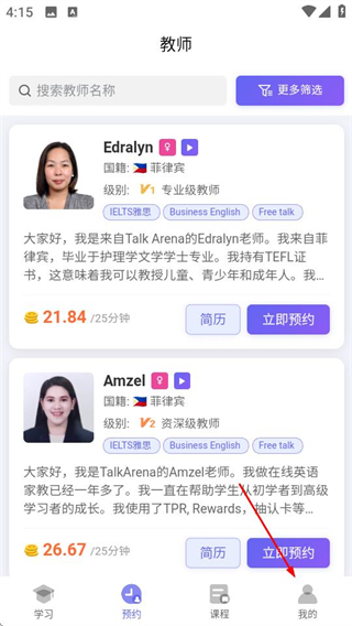 支持教师灵活预约功能,搭配详细的教师视频介绍内容,帮助用户真实了解教师的教学风格与授课特点,精准匹配自身学习需求,预约流程简洁适配不同时间安排。