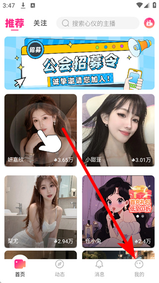 1、打开小米直播APP,点击底部导航栏的我的,进入个人页面。