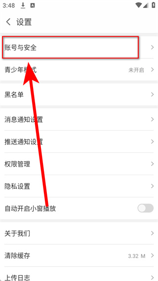 3、在设置页面选择账号与安全,进入账户与安全页面。