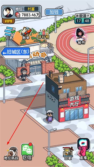 1、进入游戏主界面,点击地位挑战进入晋升场景,开启地位逆袭流程。