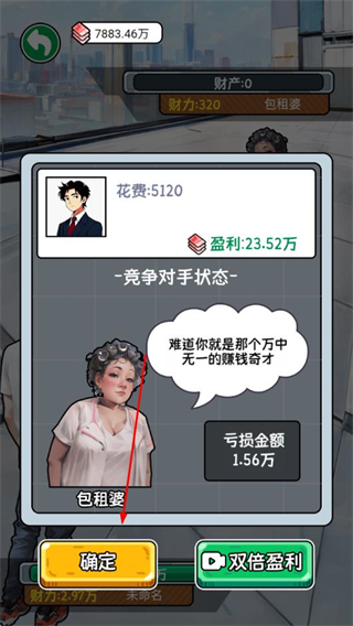 4、击败对手后获取盈利奖励,点击确定领取奖励,解锁更高层级的地位挑战。