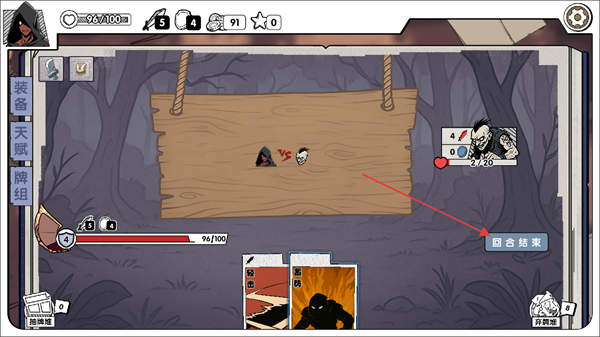 3、当本回合的卡牌操作完成后,找到界面中的回合结束按钮并点击,即可结束当前回合进入敌方回合。