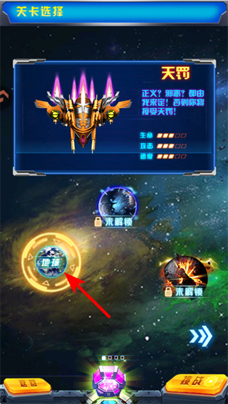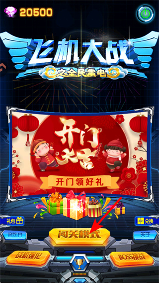 1、在游戏主界面点击闯关模式按钮,这是进入飞机大战关卡挑战的关键操作,点击后会开启关卡选择流程,展开空战冒险的核心体验。