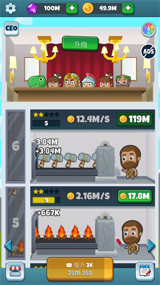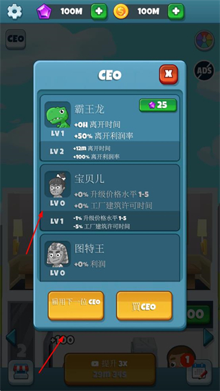 2、点击CEO选项,消耗资源雇佣对应角色,解锁其增益效果,助力提升整体收益效率。