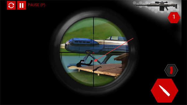 2、通过狙击镜观察目标区域,定位敌方飞行员的位置,准备瞄准。
