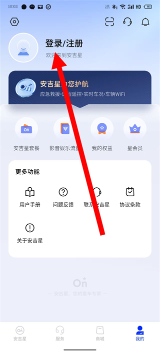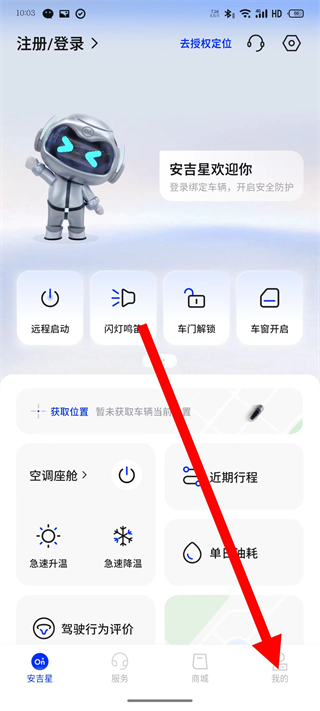 1、打开安吉星,点击底部我的,进入个人页面。