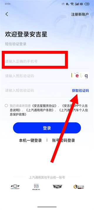 3、在登录页面,输入正确的手机号,点击获取验证码。