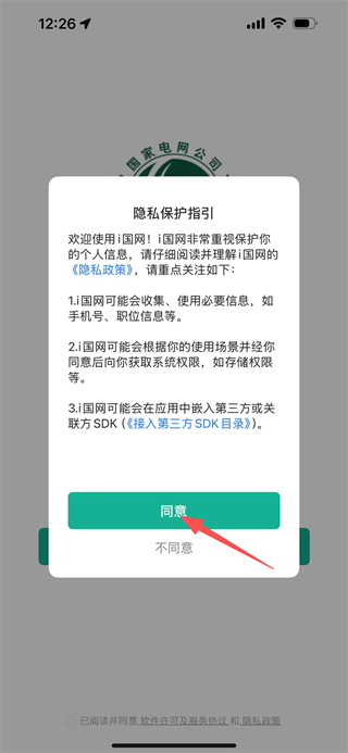 1、在隐私保护指引弹窗中,点击同意,进入i国网启动页面。