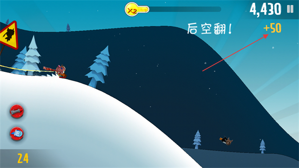 3、滑行时触发后空翻这类特技动作,能获得额外加分,同时界面的倍数标识可助力得分提升,需保持滑行节奏来触发更多特技。