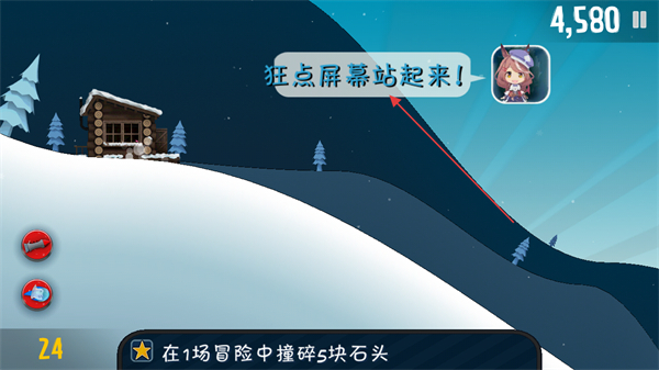 4、若滑行中出现摔倒提示,需按照狂点屏幕站起来的指引快速点击屏幕,让角色站起继续滑行。