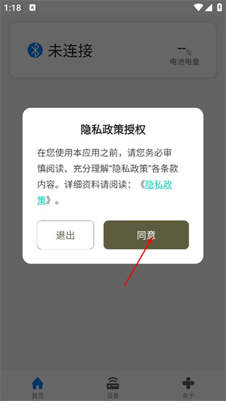 1、在隐私政策授权弹窗中,点击同意,进入应用首页。