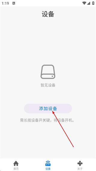 2、在应用首页,点击底部的设备选项,进入设备页面。