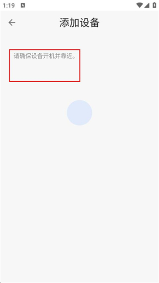 4、在添加设备页面,按照请确保设备开机并靠近的提示操作,等待设备搜索连接。