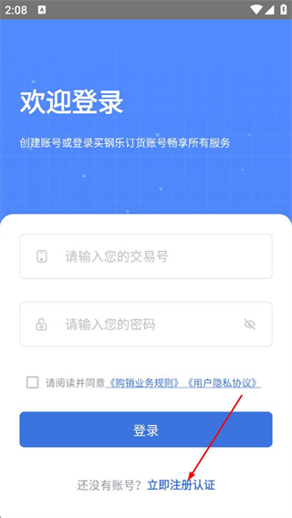 1、在欢迎登录页面,点击立即注册认证,进入账号注册页面。