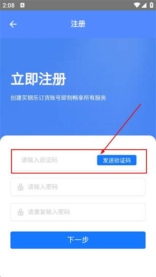 3、在注册页面,点击发送验证码,填写收到的请输入验证码对应的内容。