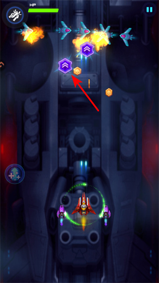 1、操控战机移动至道具位置,这是强化战斗能力的关键操作,拾取道具后可获得增益效果,提升战机输出或生存能力,推进进度。