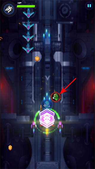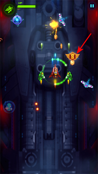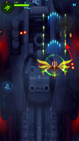 3、操控战机移动避开敌方发射的弹幕,这是保障战机生存的核心操作,灵活调整位置可减少受到的伤害,保持战机的生命值稳定。
