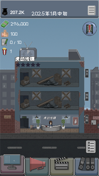 像素与纸片人结合的风格极具辨识度,画面简约却不失细节,营造出轻松幽默的游戏氛围,搭配电影制作的核心玩法,让经营过程更具趣味性,适配日常休闲放松场景。