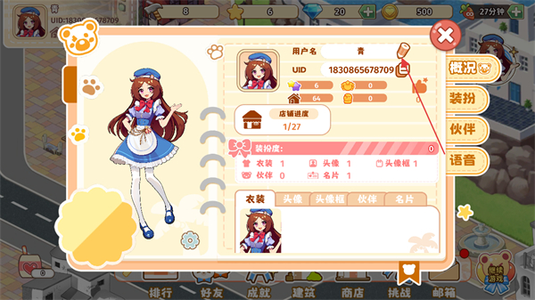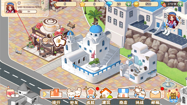 2、在游戏主界面中,可以查看到小镇的经营情况,点击左上角的头像可以进入个人信息界面。