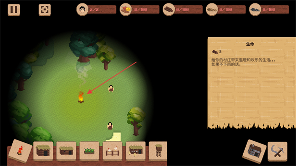 4、游戏中的篝火可给村庄带来温暖,保障村民的生活,是维持村庄生存与发展的基础设施之一。