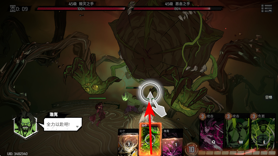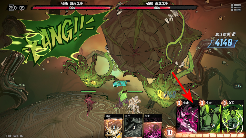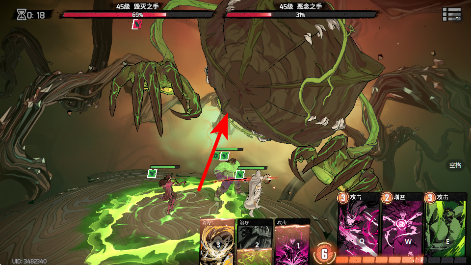 1、在BOSS战场景中点击治疗类技能卡片,这是维持团队状态的关键操作,治疗技能可恢复我方单位的生命值,保障持续作战的能力,避免被敌方压制。