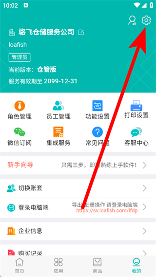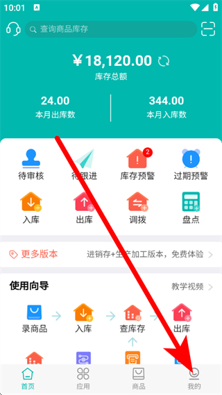 1、打开智能云仓库存管理,点击底部的我的,进入我的页面。