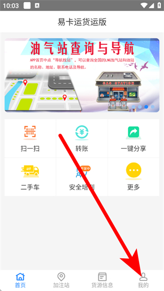 1、打开易卡运,点击底部的我的,进入我的页面。