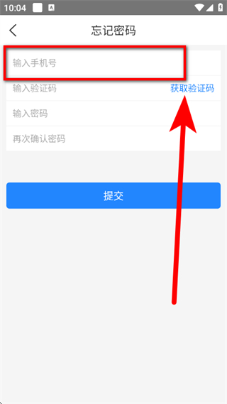 4、在忘记密码页面,输入手机号,点击获取验证码。