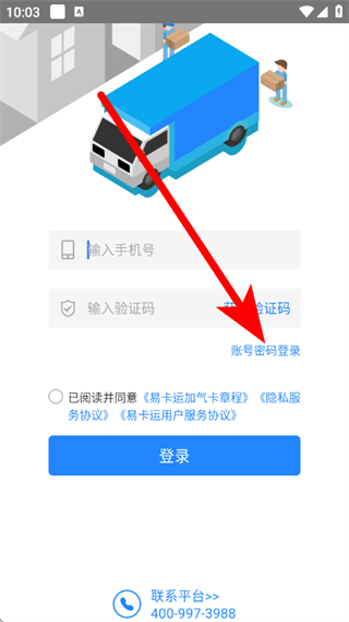 2、在登录页面,点击账号密码登录,进入账号密码登录页面。