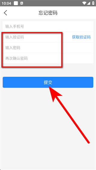 5、输入验证码、设置并确认新密码后,点击提交,完成密码重置。