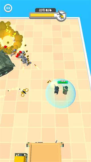 四大兵种定位清晰,近战士兵负责前排抗伤与贴脸突袭,机甲操控者能召唤重型机甲展开范围轰炸,机枪手可提供持续火力压制敌人,合理搭配阵容才能应对不同战场局势。