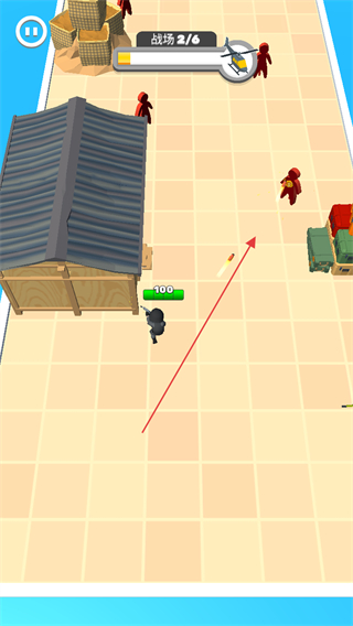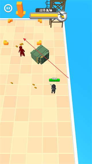 1、操控英雄角色移动,攻击场景中的敌方单位红色小人,推进战场进度。