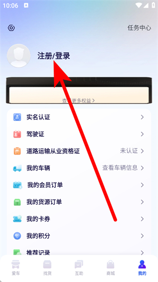 1、打开解放行司机版,在首页点击底部我的,进入个人页面。