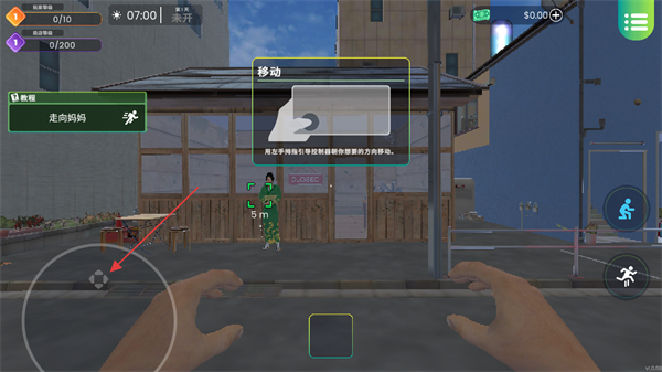 2、在游戏教程阶段,根据走向妈妈的指引,通过左侧控制器向目标方向移动,靠近对应的NPC完成该步骤任务。