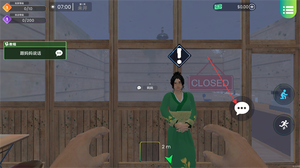 3、完成移动后,根据跟妈妈说话的提示,点击界面中的对话按钮,与妈妈进行交互以推进游戏流程。