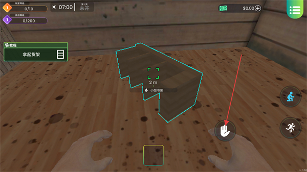 4、按照拿起货架的任务要求,点击界面中的交互按钮,获取场景中的小型书架,完成该物品的拾取操作。