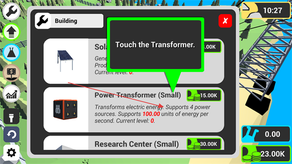 1、在建筑界面选择PowerTransformerSmall,小型变压器,消耗资源解锁并进入建造流程。