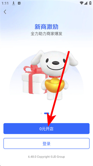 2、在新商激励页面中,点击0元开店,进入注册页面。