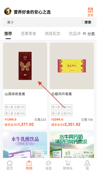 2、在购物页面,点击目标商品,进入商品详情页。