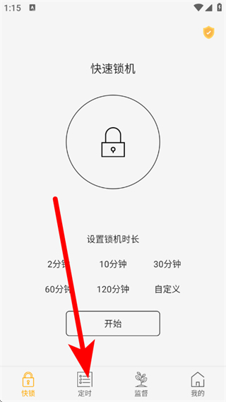 1、打开锁机达人,点击底部定时,进入定时锁机页面。