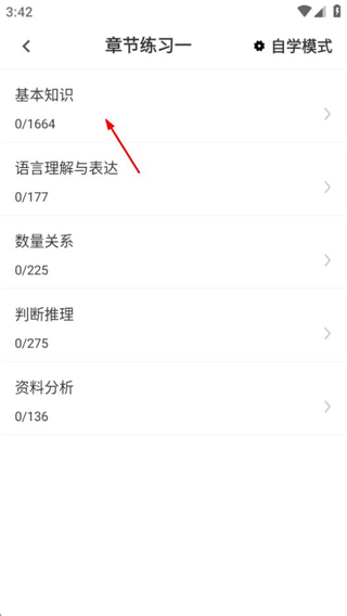 2、在章节练习页面,点击基础知识选项,进入对应的分类页面。