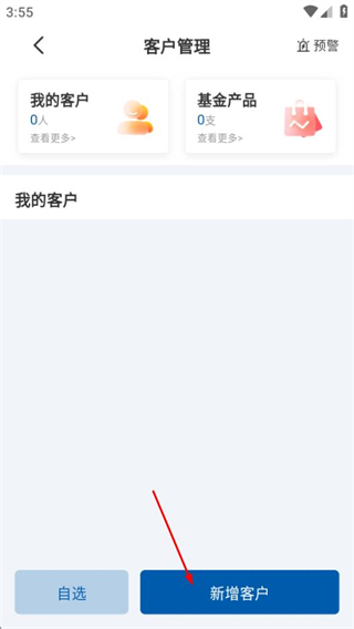 2、在客户管理页面,点击新增客户按钮,进入增加基金信息填写页面。