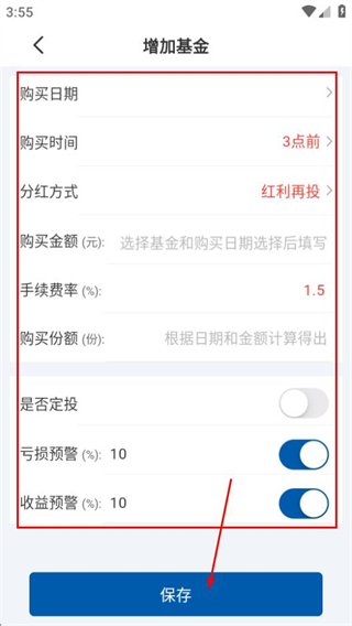 3、在信息填写页面,完善基金相关信息后,点击保存完成客户添加。