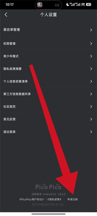 4、在个人设置页面中,找到申请注销,按照页面提示完成账号注销。