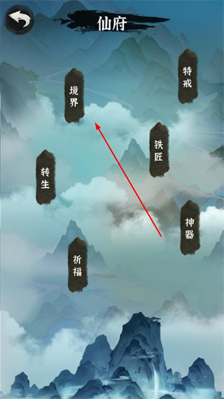 2、在仙府页面中,找到并点击境界选项,进入当前境界的详情界面。