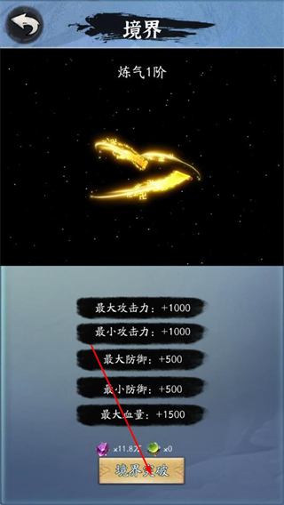 3、在境界详情页确认突破所需的灵石、仙丹等资源充足后,点击境界突破。